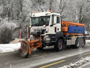 In der kalten Jahreszeit machen wir Winterdienst und Schneeräumungen.