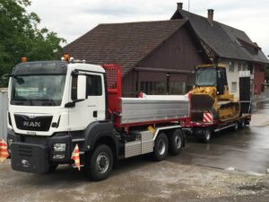 Nicht nur Transport von diversen Materialien, Aushub, Kies, Sand, Magerbeton, Belagsabbruch, Betonabbruch und Mischabbruch ist für uns alltäglich, sondern der Transport von Grossmaschinen, Bauelementen und anderen Gütern ist unsere Arbeit.